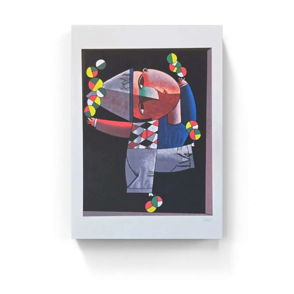 Gravura assinada Abstrato palhaço malabarista Inos Corradin 45/100 66x48