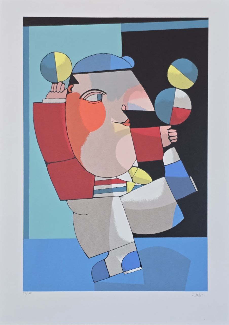 Gravura assinada Homem malabares Inos Corradin 54/100 70x50