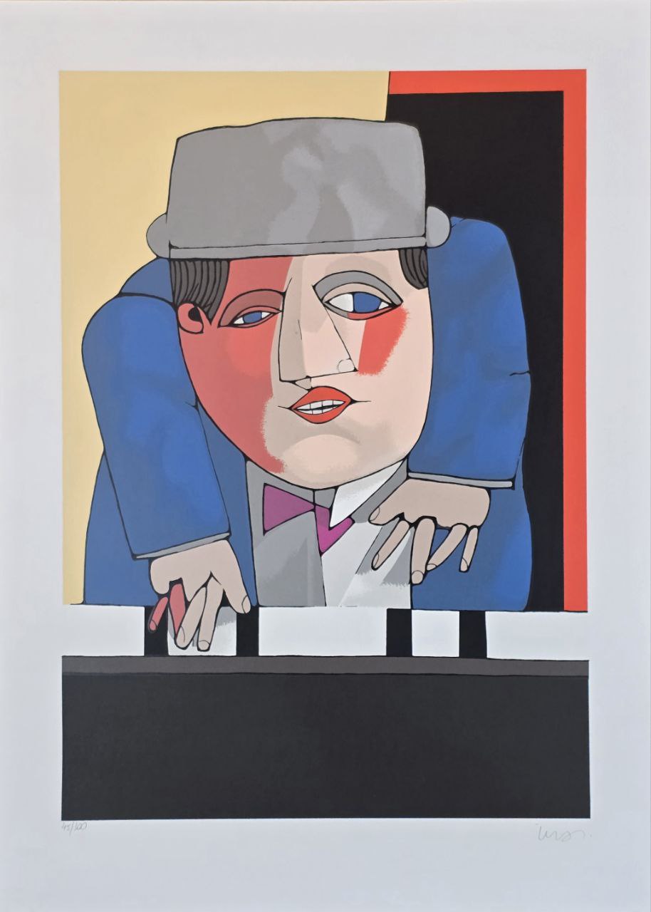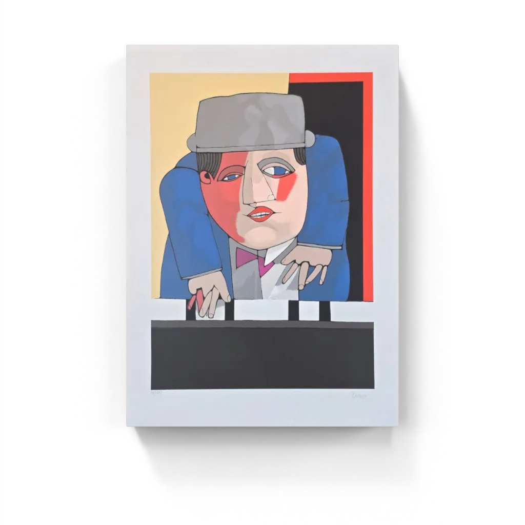 Gravura assinada Homem paleto azul tocando piano Inos Corradin 45/100 66x48