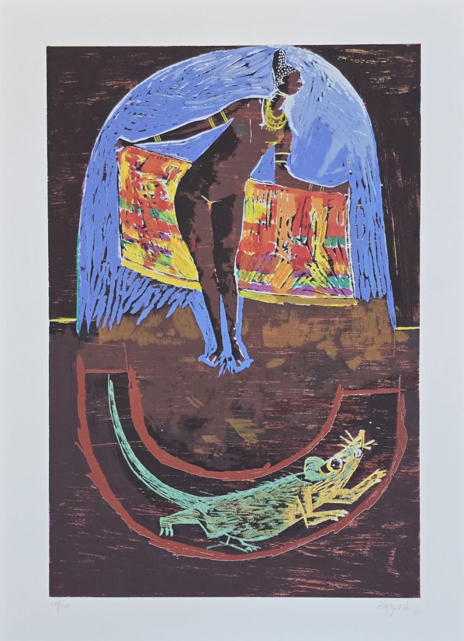 Gravura assinada (mulher africana e rato) Carybé 118/120 50 x 70