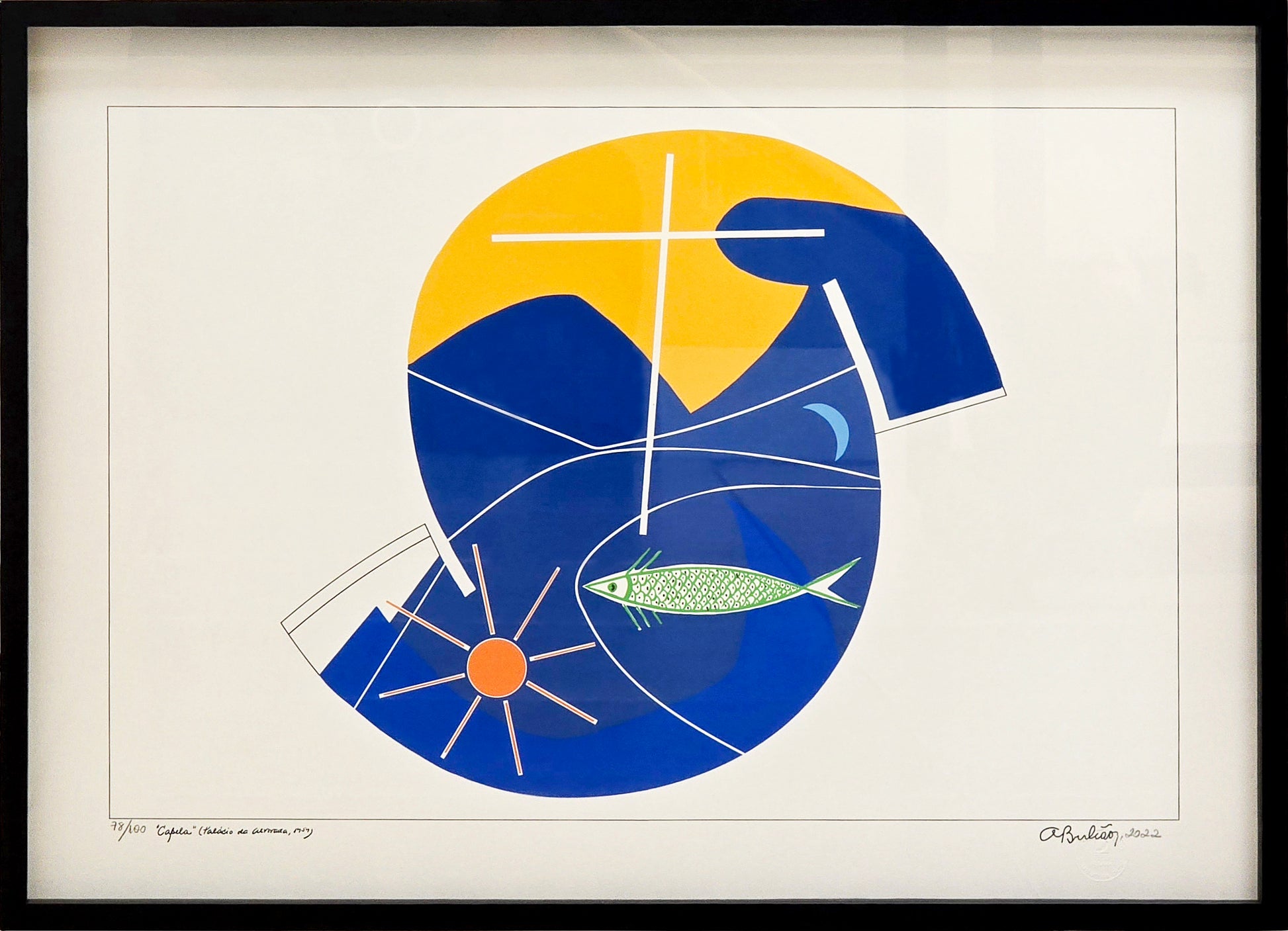 Quadro pronto com gravura assinada Athos Bulcão - Capela 52x72 78/100